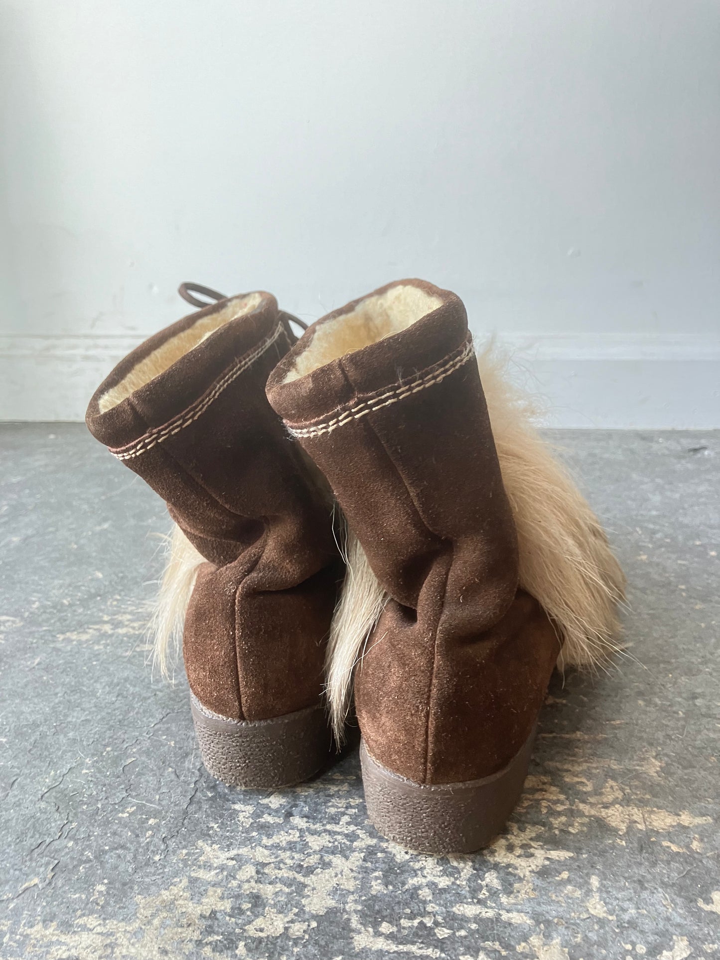 Vintage Pichette French Fur Boots in wonderful condition. These are some wild boots full of spunk. Comfortable and ready to trek through life. Sherpa lined. Displaying some wear. Sold as is. Made in France. Real fur, professionally clean only.