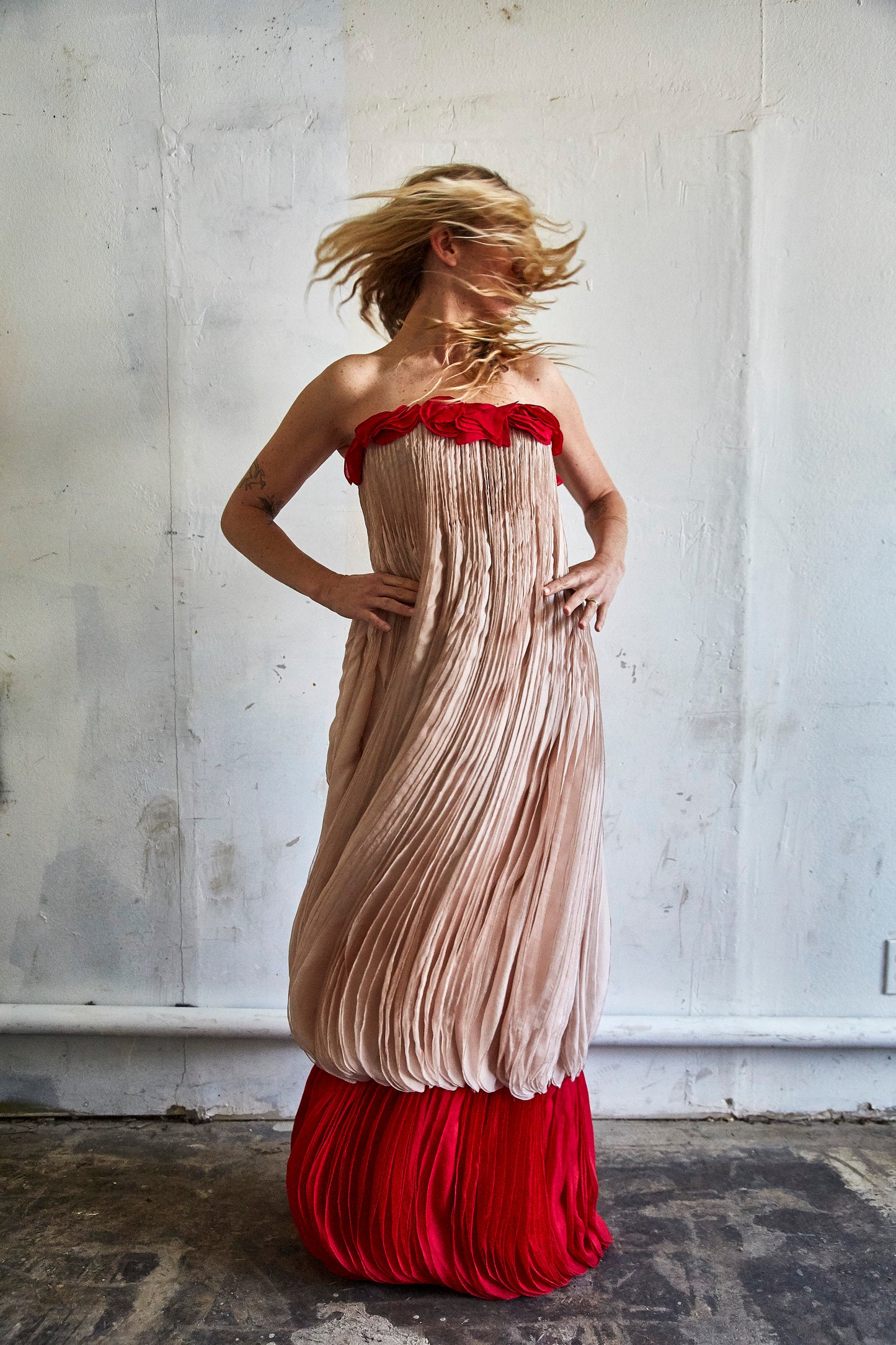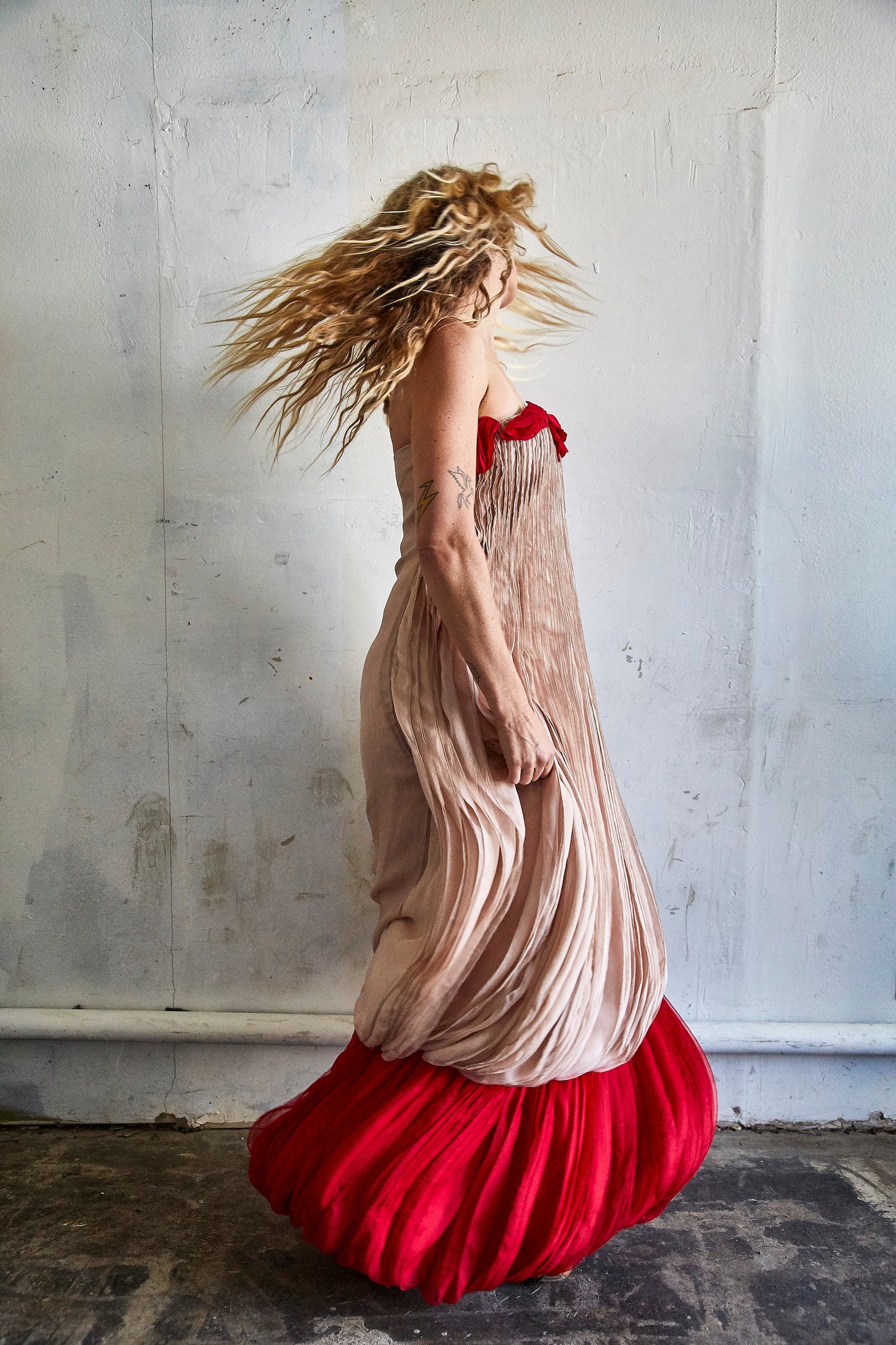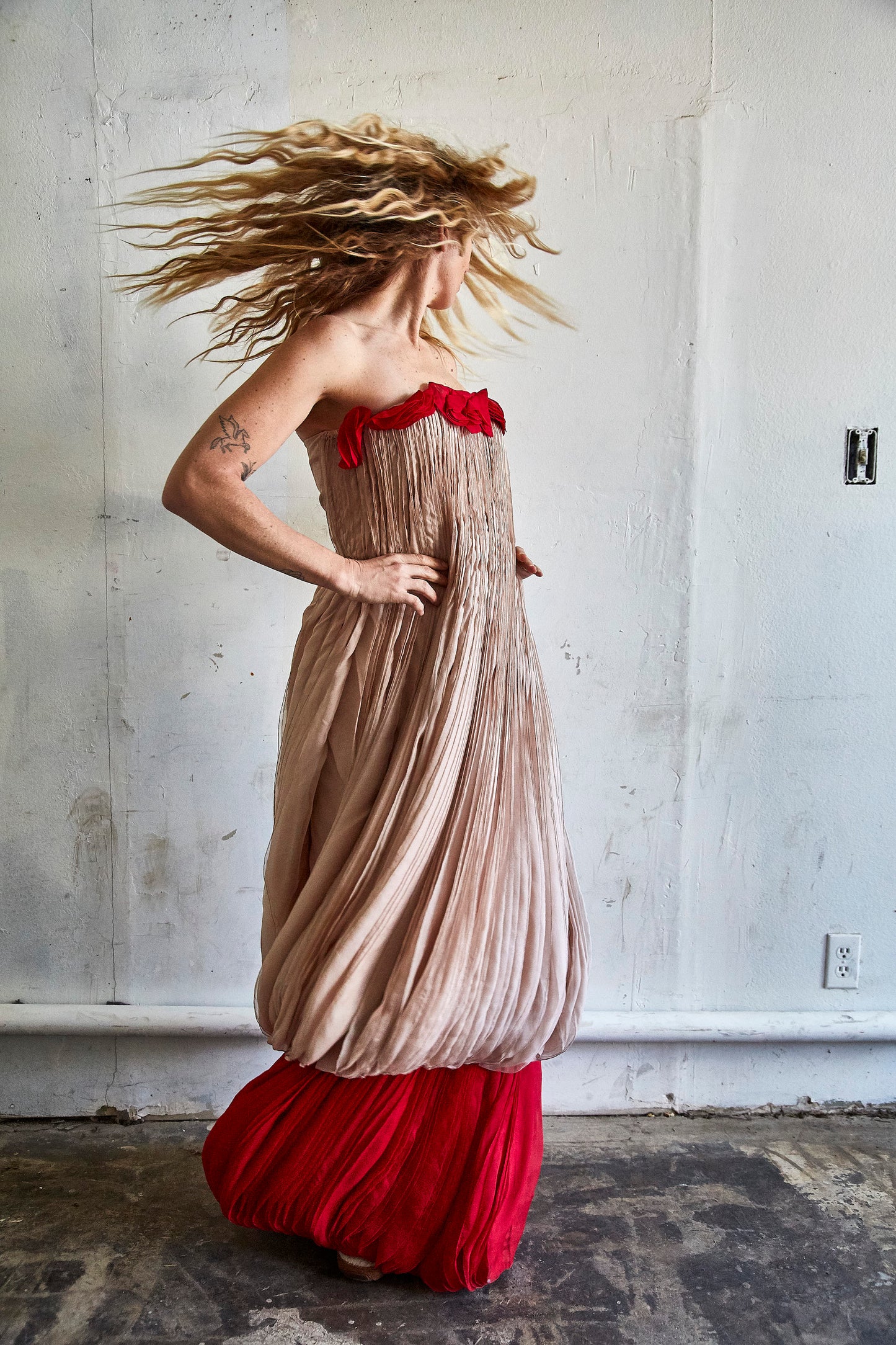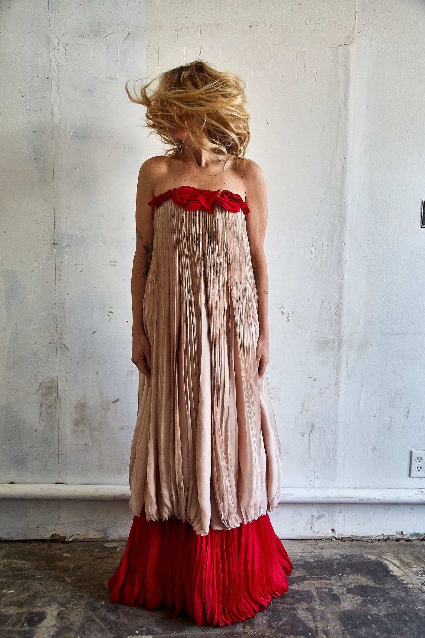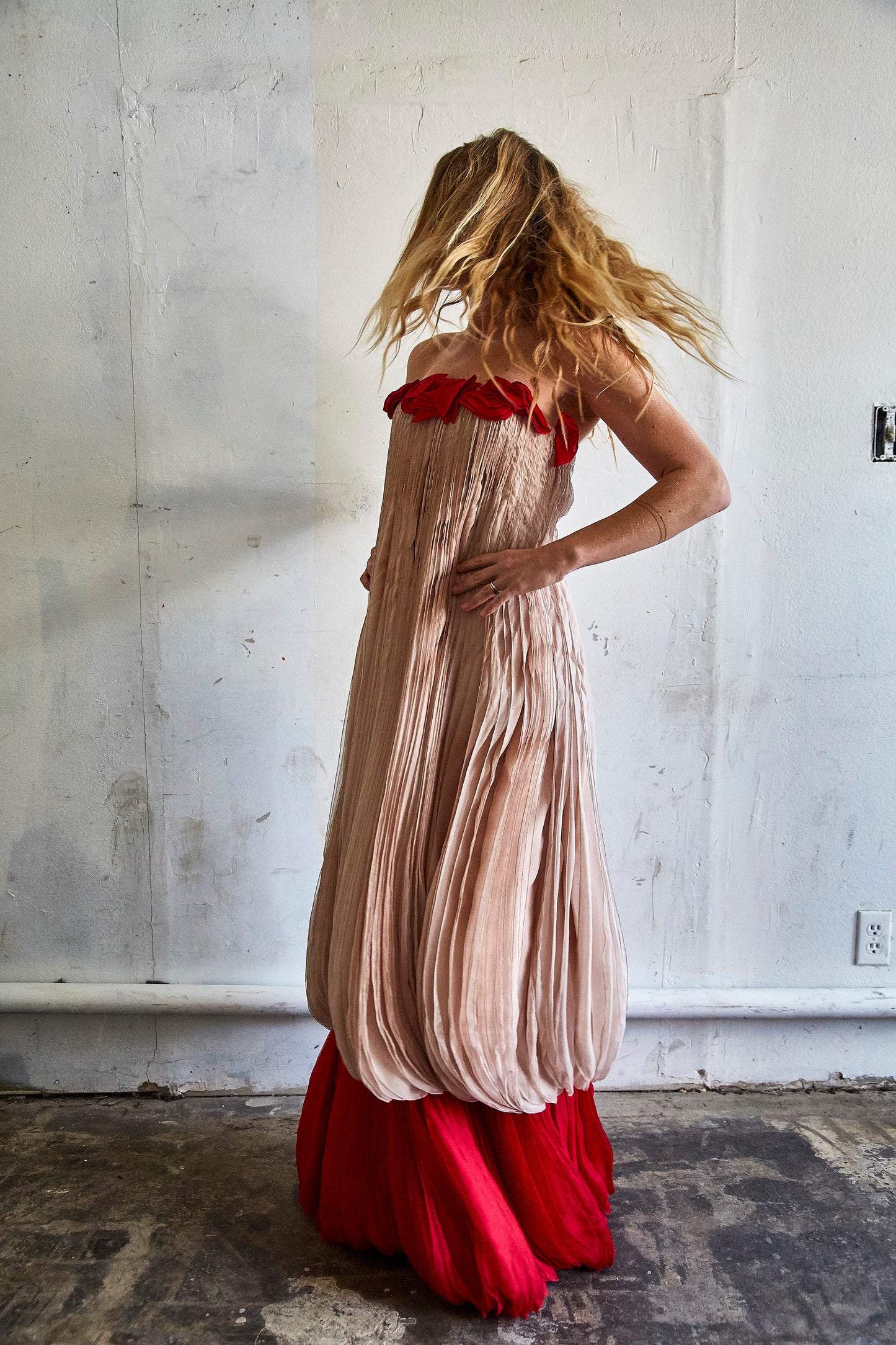 Vintage Valentino Pink and Red Crepe Silk Gown - The Curatorial Dept.