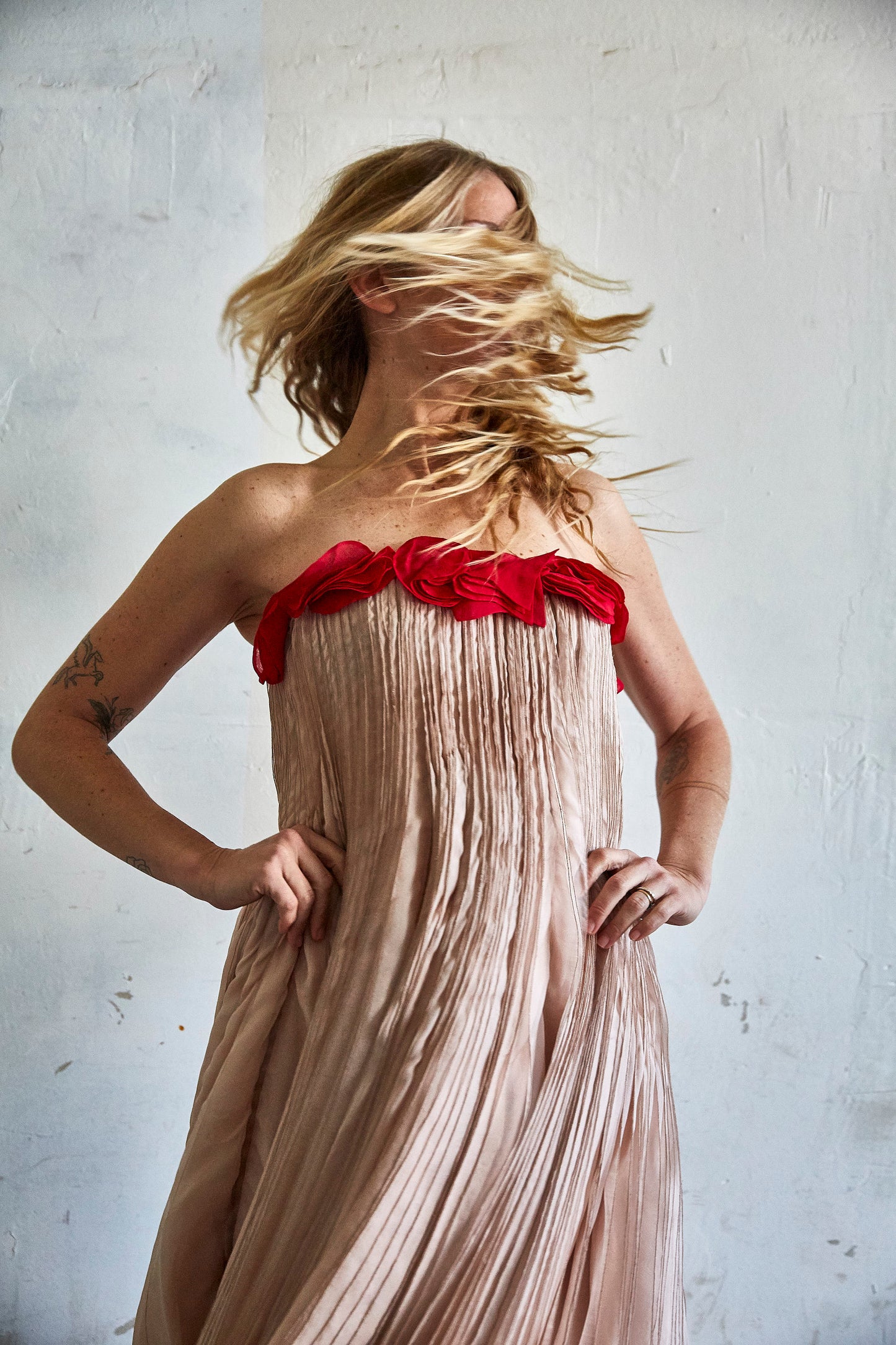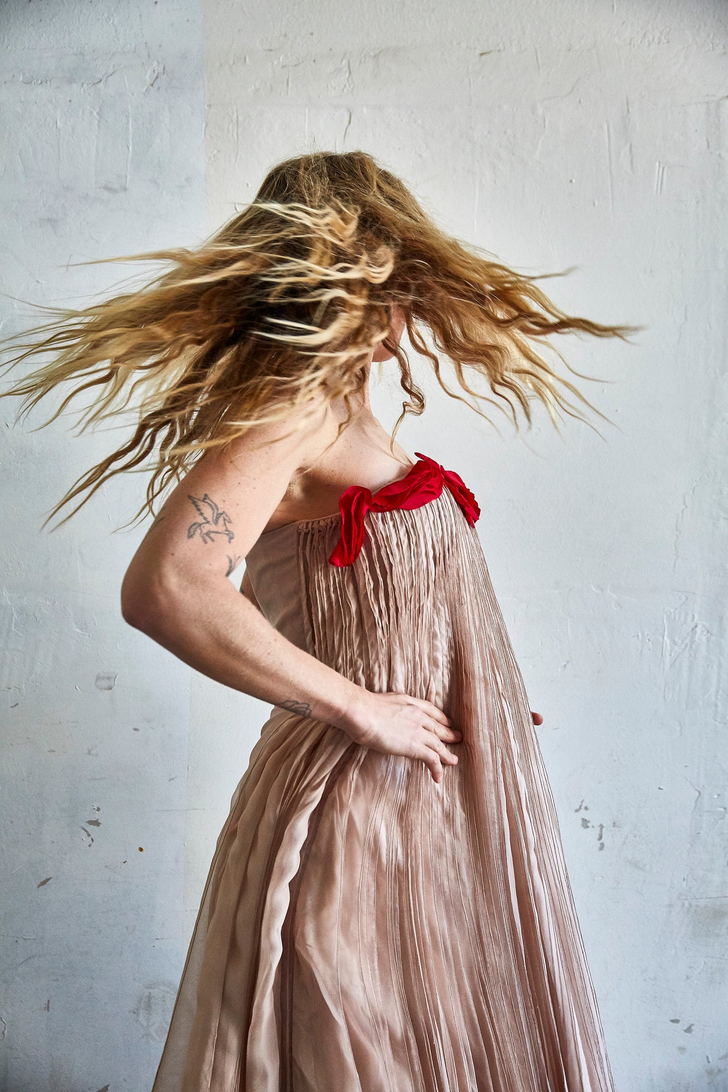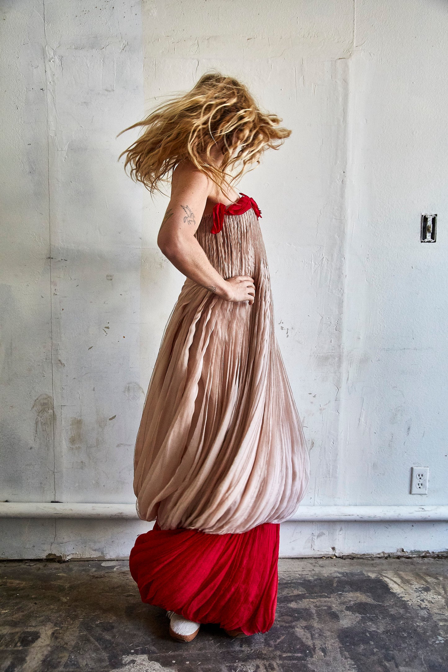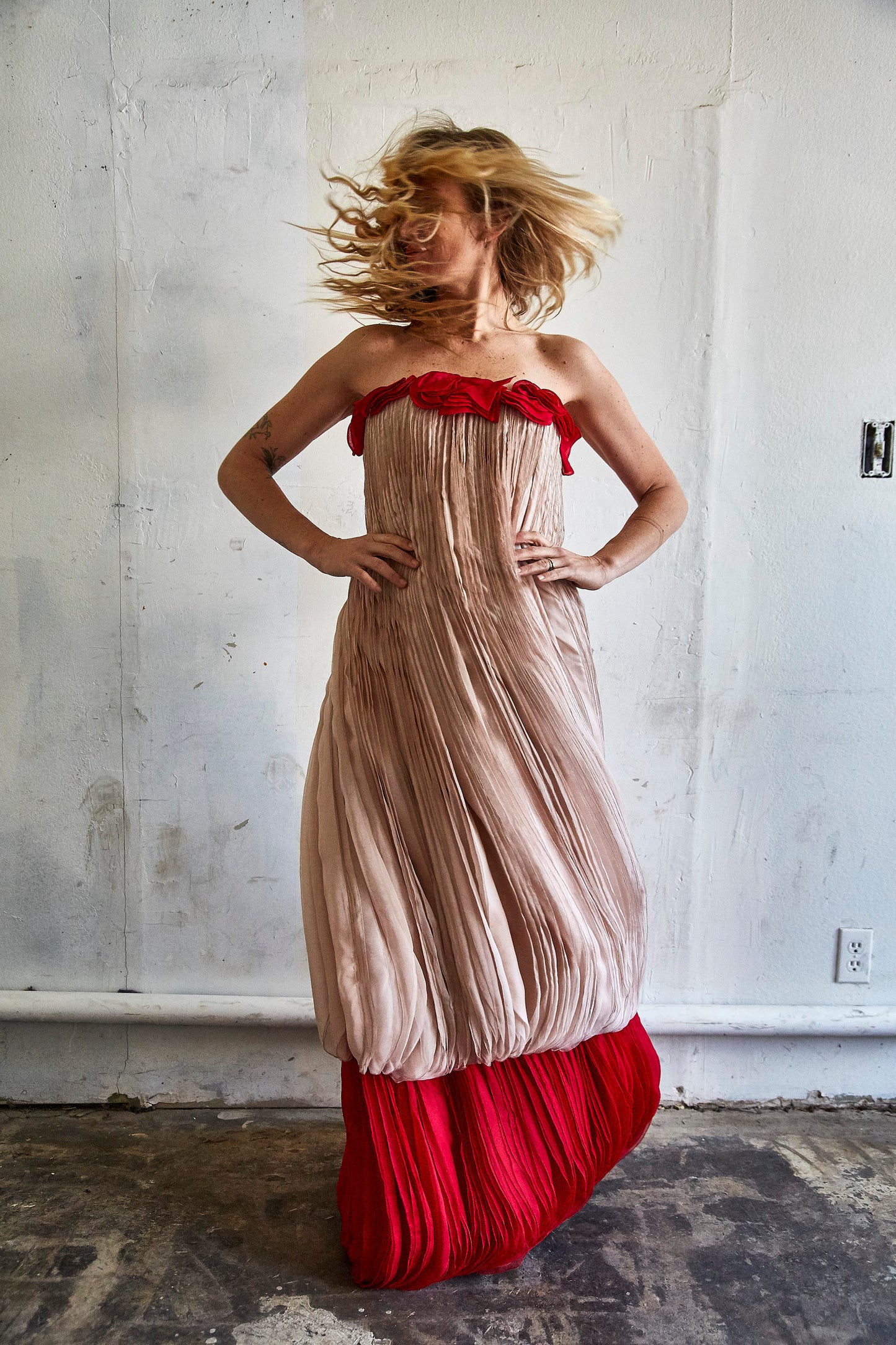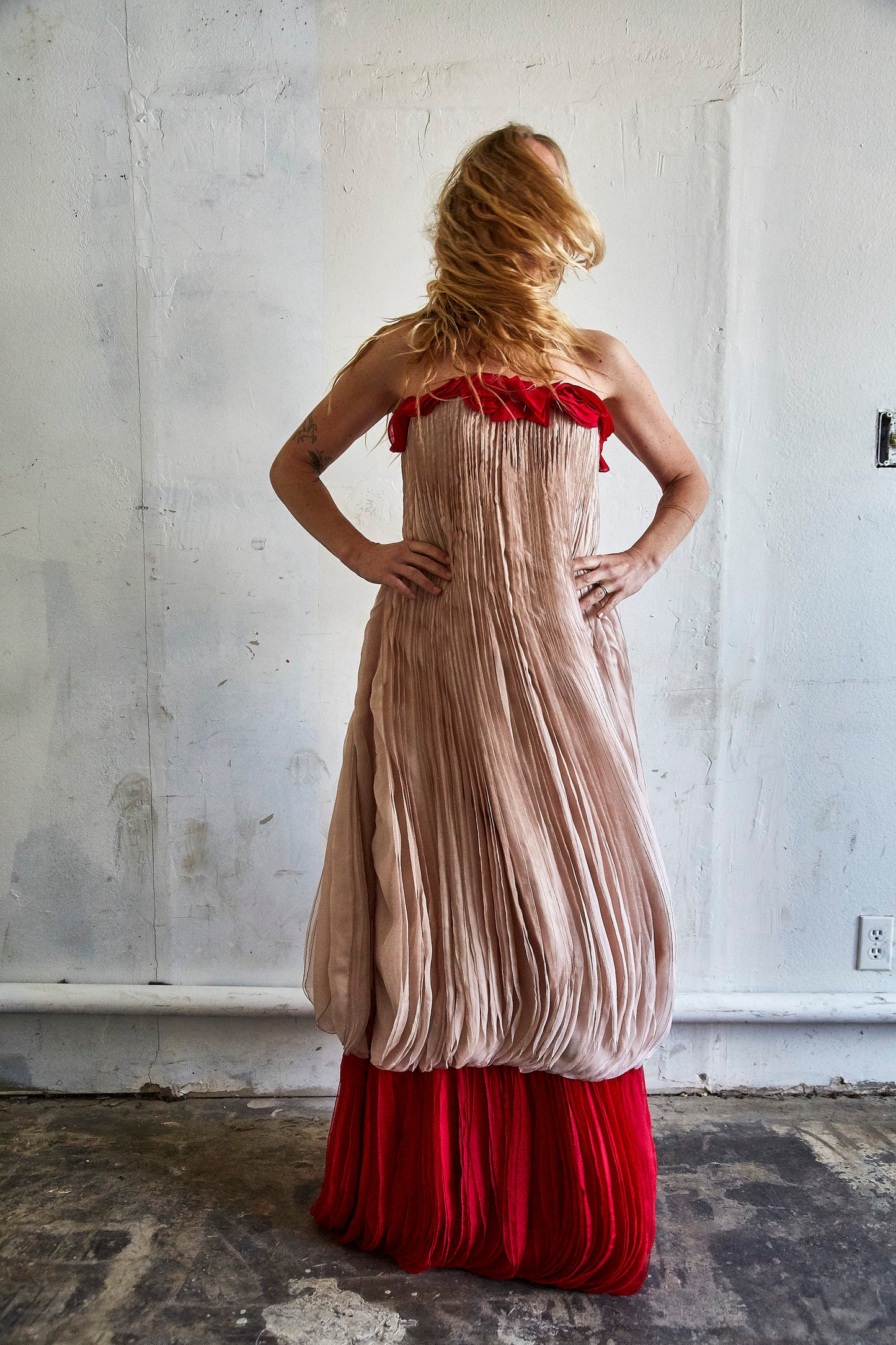 Vintage Valentino Pink and Red Crepe Silk Gown - The Curatorial Dept.