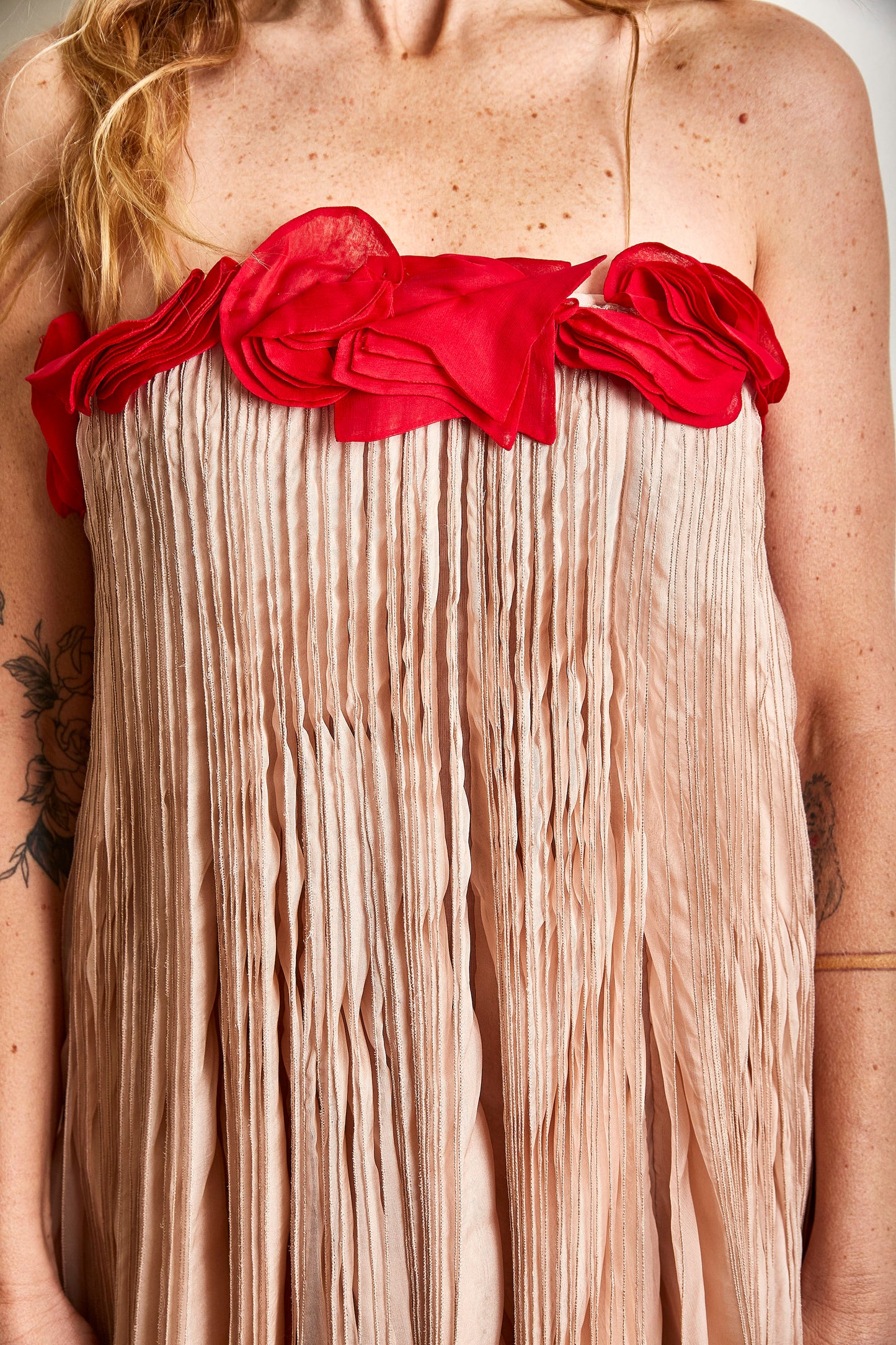 Vintage Valentino Pink and Red Crepe Silk Gown