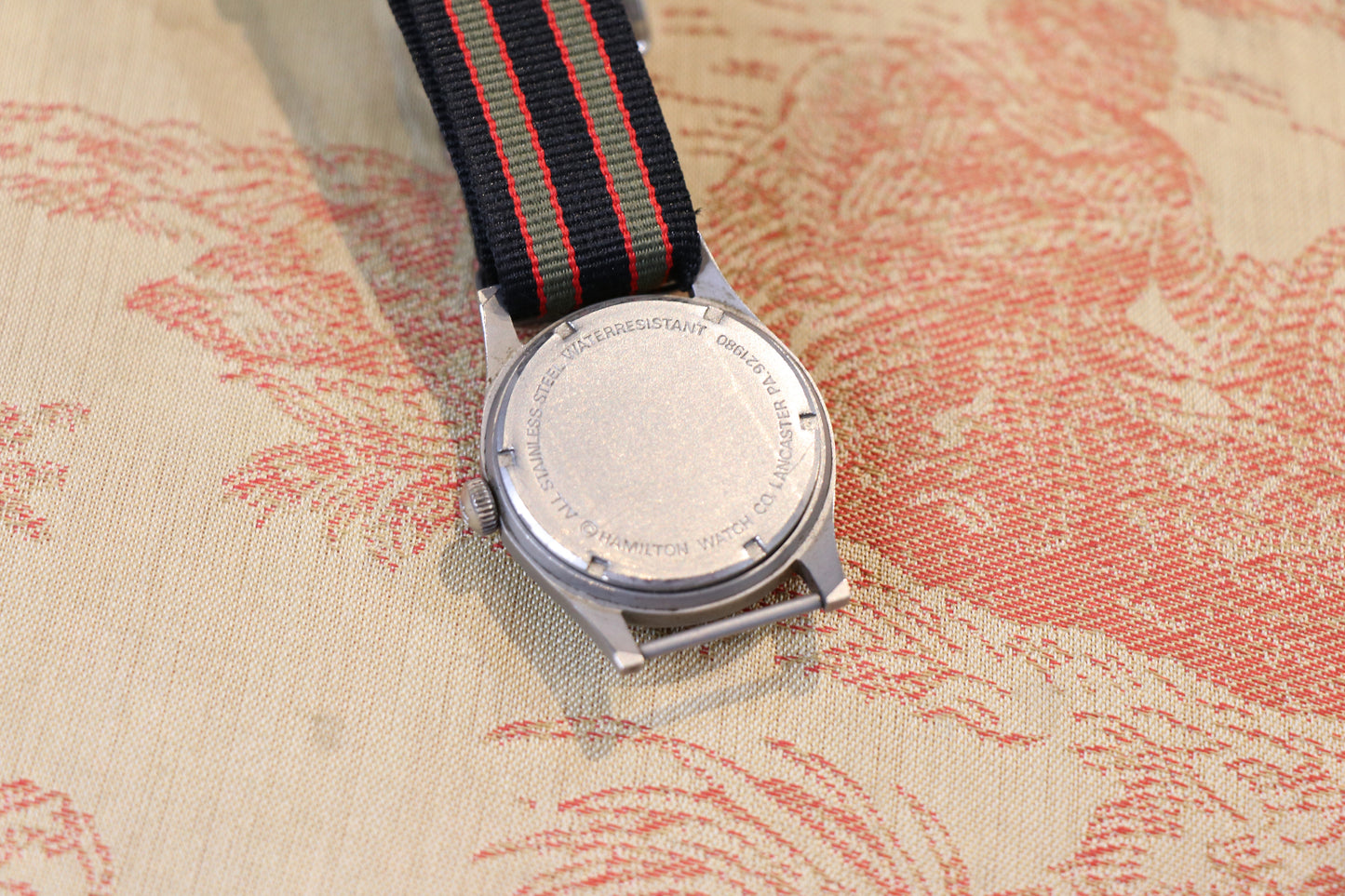 Highly collectible 1980s quartz Hamilton field watch produced for LL Bean and sold through the catalog. Recommended to wear with khakis, duck boots and roll-neck sweater.