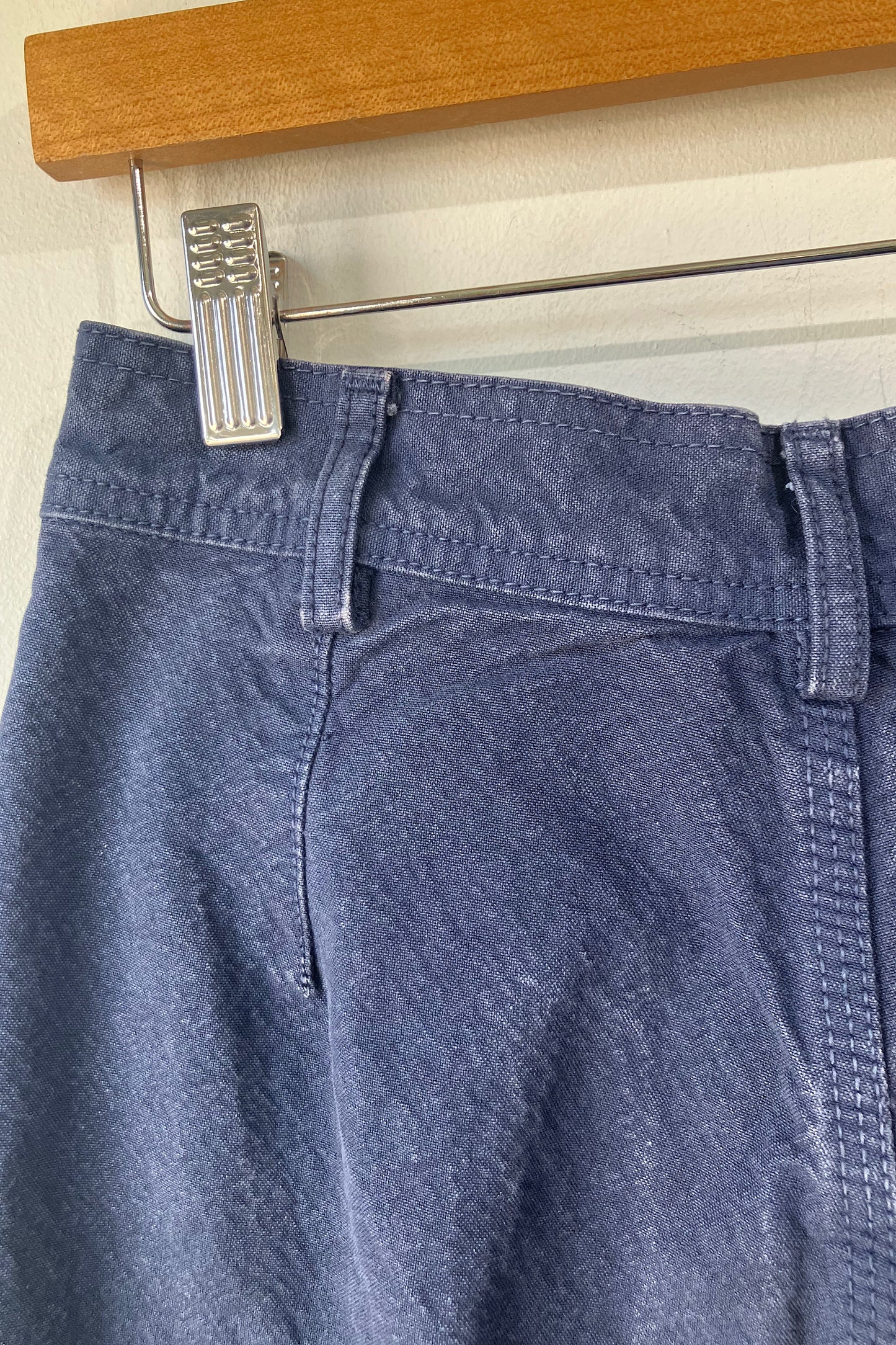 Jesse Kamm Bill Cunningham Pants. Midnight blue colored coated canvas pants. Straight wide leg fit. 100% cotton, hand wash cold. Marked as size 4. Made in California.
