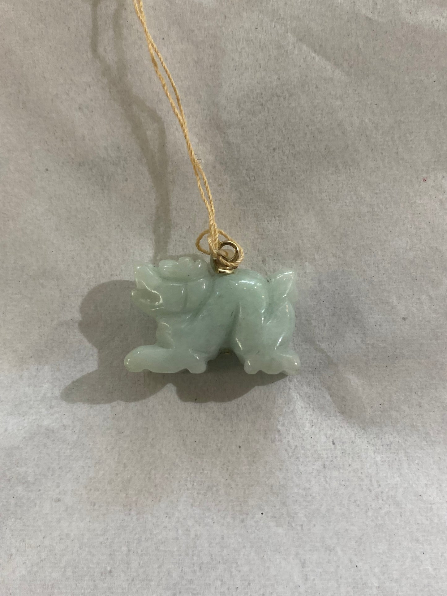 Vintage 14K Gold and Carved Celadon Green Jade Dragon Charm or Pendant in great vintage condition. A very unique and special treasure trinket to keep the vibes solid.
