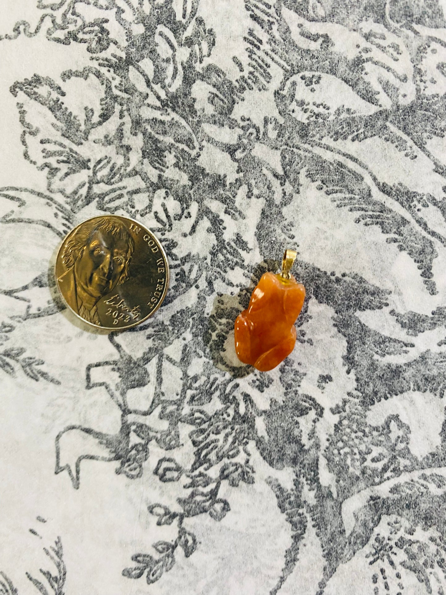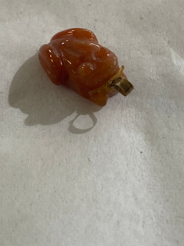 Vintage 14K Gold and Carved Orange Jade Frog Charm or Pendant