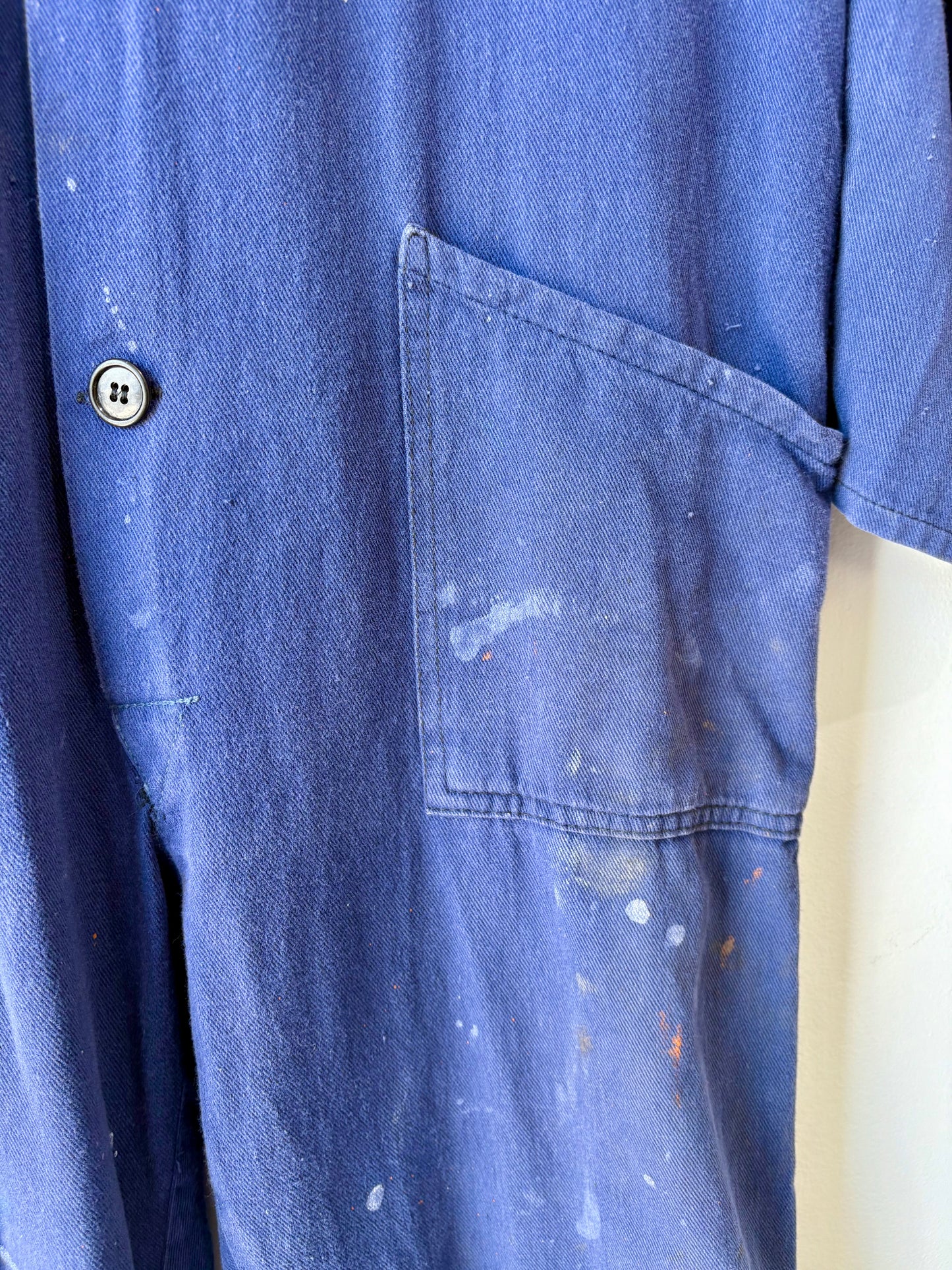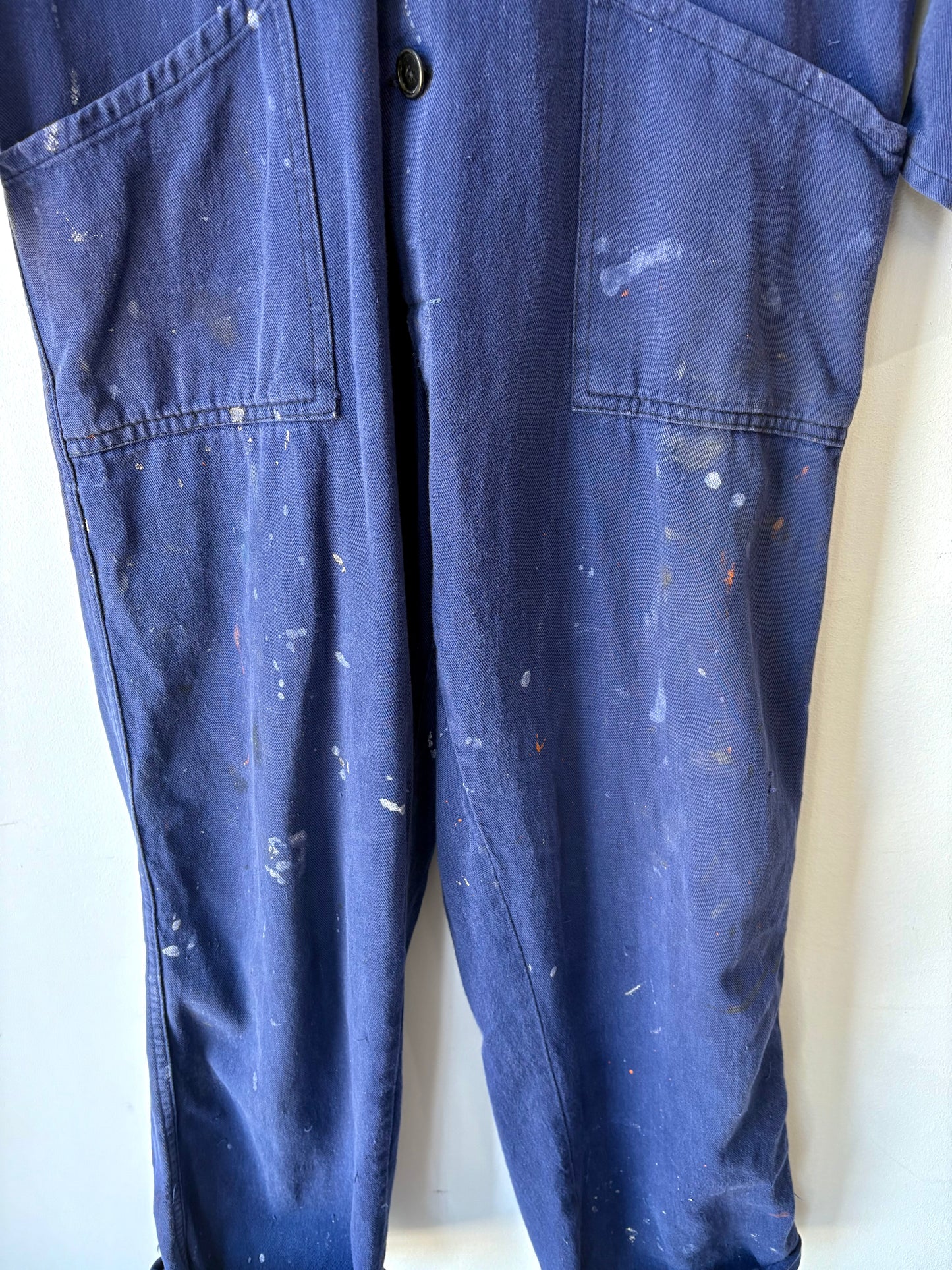 These Vintage Blue Workwear Coveralls bring a splash of history and character to your wardrobe. Crafted from sturdy navy cotton, they’re perfectly worn-in for ultimate comfort and style. The button-up design adds a classic touch, while authentic paint splatters tell stories of creative adventures. Ideal for those who love a playful, rugged look with a vintage vibe.
