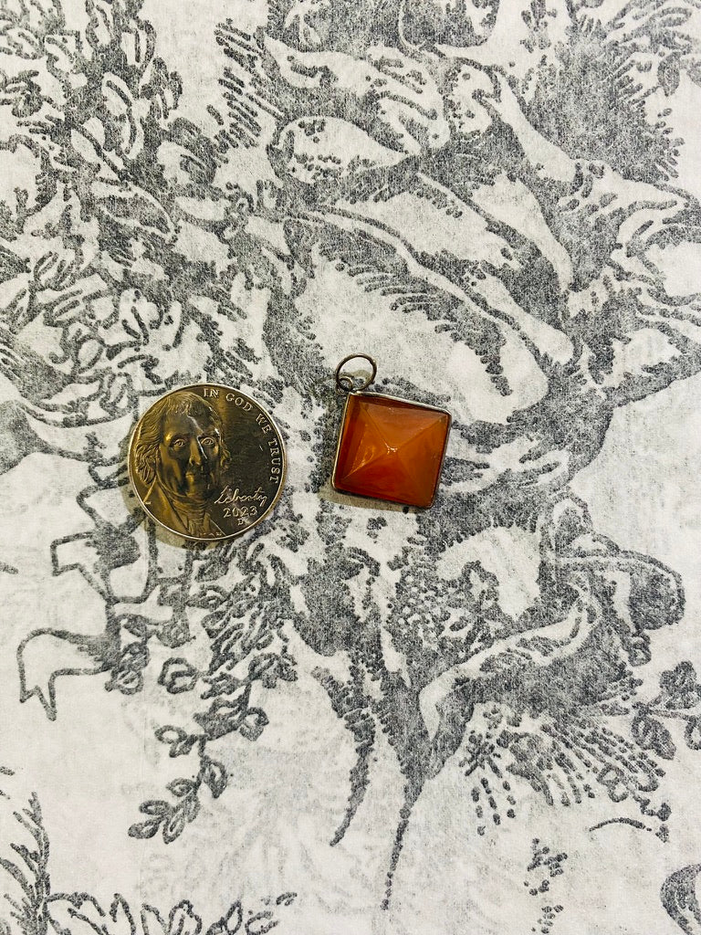Vintage Carnelian Pyramid Charm or Pendant.Unknown metal.
