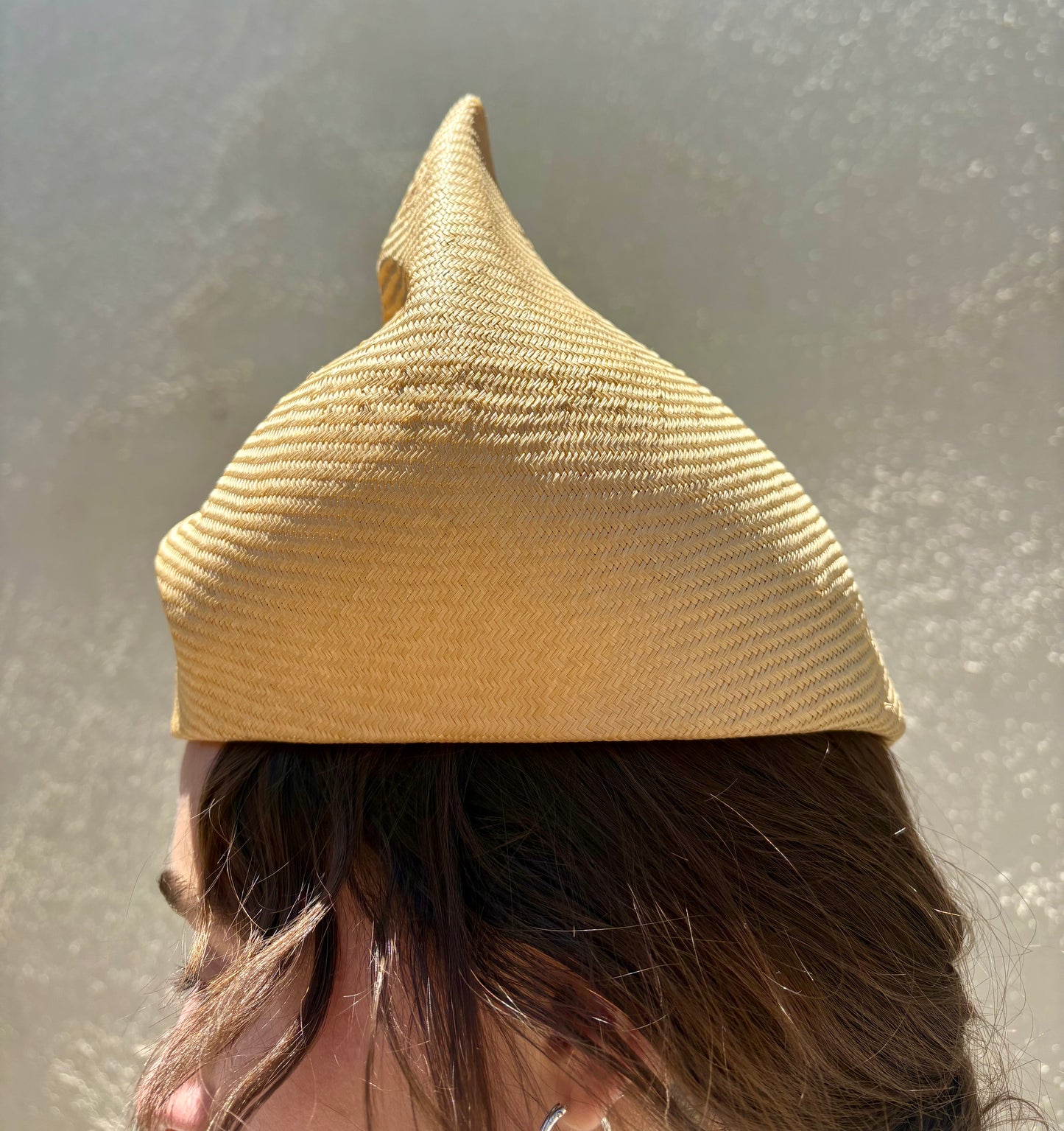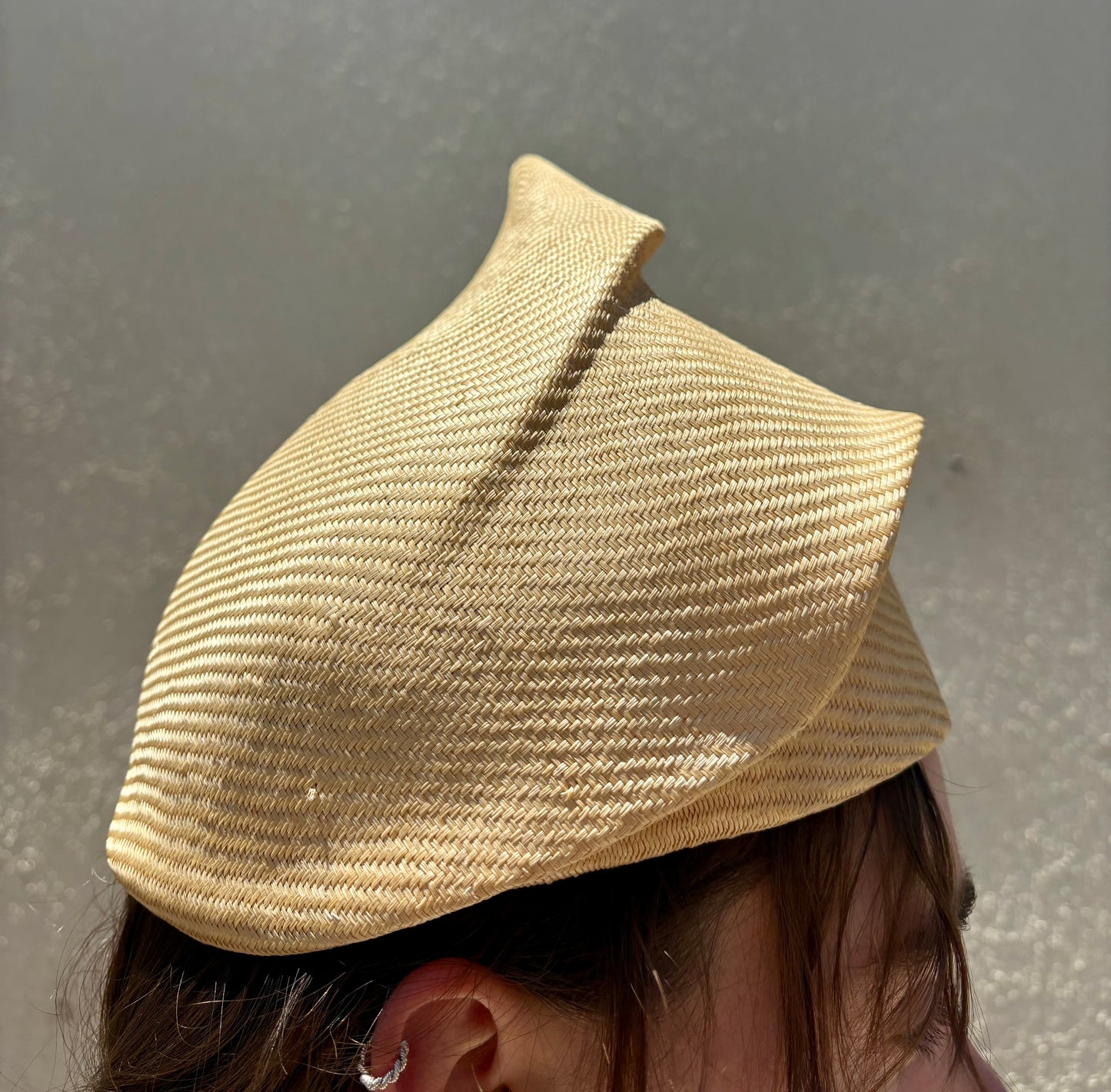 This Vintage Georgio Armani Sculptural Hat is in excellent condition! What an elegant yet fun statement. Beautiful, sculptured raffia with pleats and folds comes to a beautiful crescendo of a point at the top. Fits many, approx. size medium. Will be packed and shipped lovingly in a box.